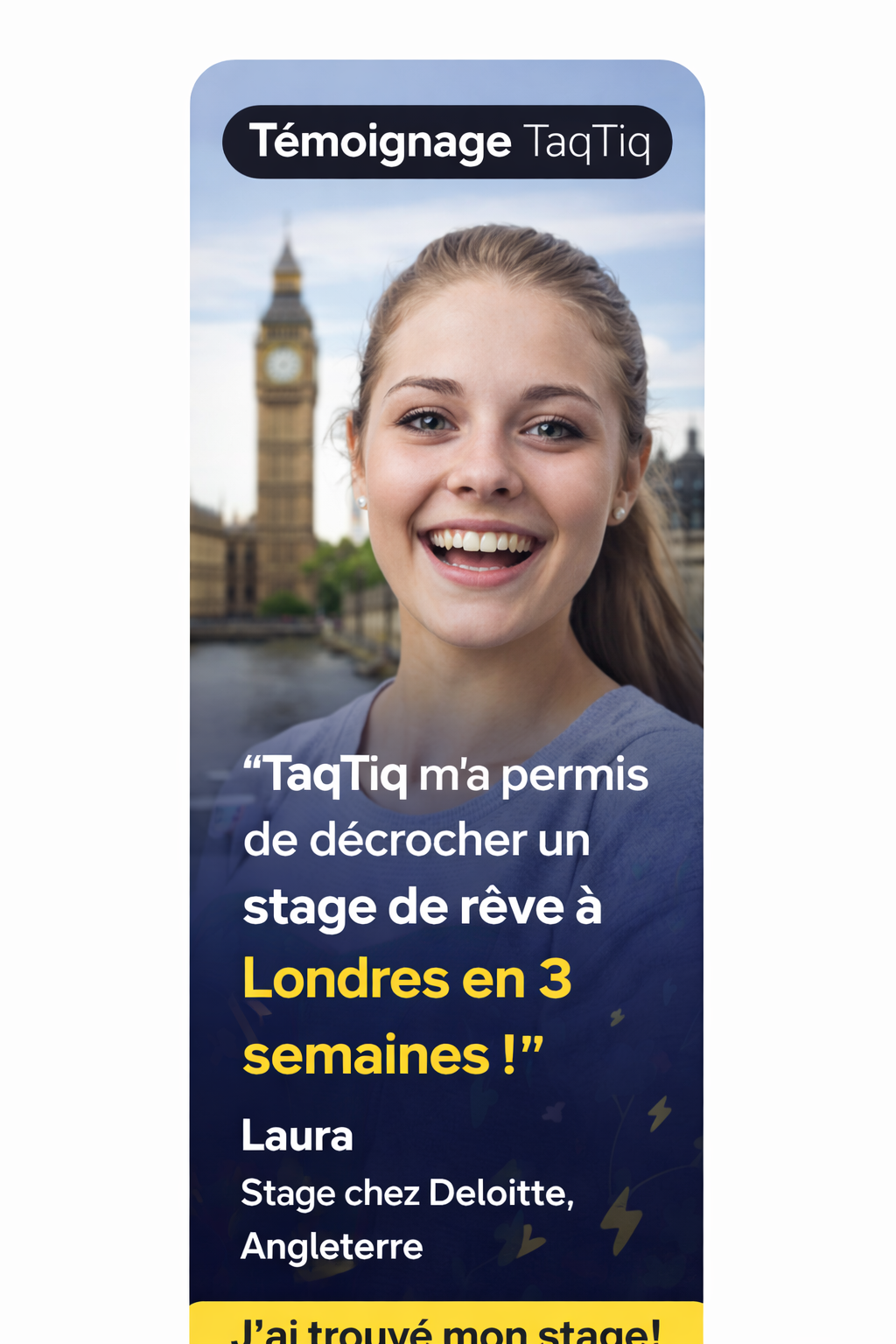 Je galérais à trouver un stage en Supply Chain en Allemagne depuis plus d’un mois. TaqTiq m’a aidé et en en seulement 1 semaine je décrochais mon premier entretien : concluant.
